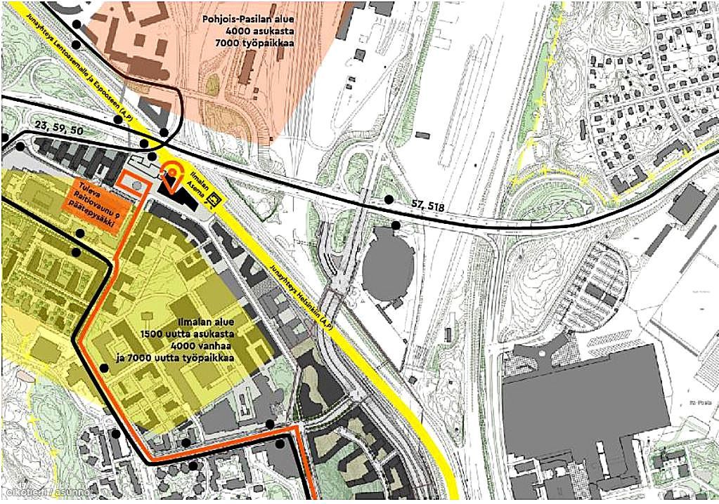 Bussilinjat: - 24, 24M Rautatientorille, Ruskeasuolle, - 50 Sompasaareen, Pajamäkeen