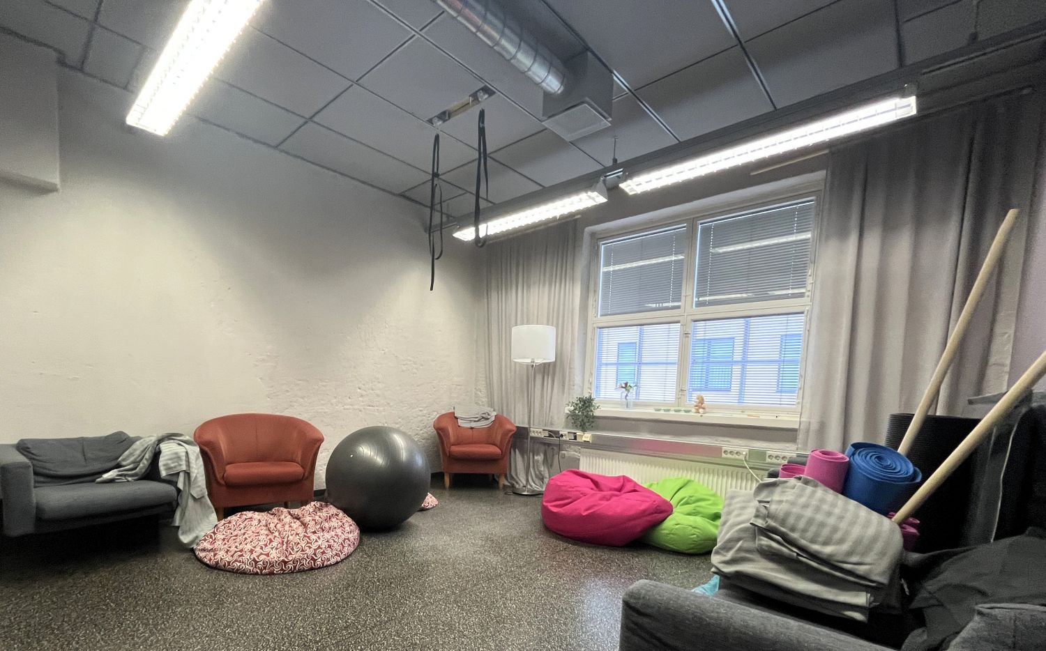 Tila sijaitsee toisessa kerroksessa, yläpihalta katutason käynti ja alapihalta esteetön hissiyhteys rappukäytävän kautta.
