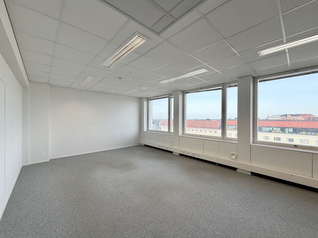 Tämä 1744 m² toimistokokonaisuus jakautuu kerroksiin 6-9. Kerroskoko on noin 493 m² ja tiloja on mahdollista vuokrata kerroksittain. Kerros voidaan jakaa kahdelle käyttäjälle esim. 218,5 m² ja 274,5 m². Tilat tarjoavat upeat näkymät kaupungille. Tiloja on mahdollista remontoida vuokralaisen tarpeiden mukaan. Kuvat ovat yleiskuvia kiinteistön tiloista.
