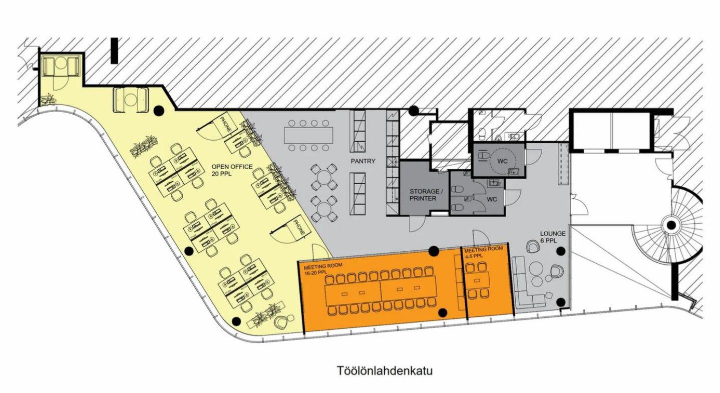 Vuokrattavana tasokasta ja modernia toimistotilaa Helsingin ydinkeskustan näköalapaikalla. Tilassa on työhuoneet, neuvottelutila, taukotila, sosiaalitilat.