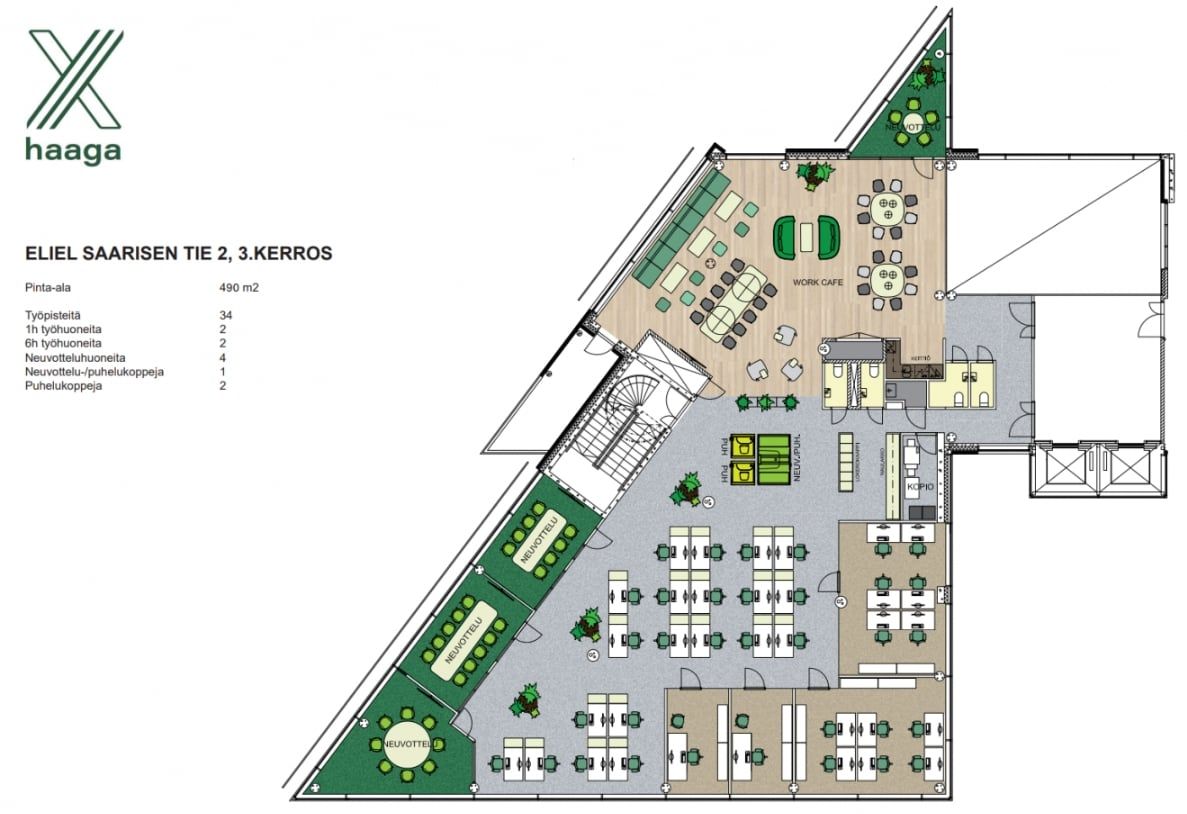 X Haaga on modernisoitu toimistotalo erinomaisella sijainnilla Pohjois-Haagassa, aivan Hämeenlinnanväylän varrella ja vehreän Keskuspuiston laidalla. Kiinteistö on helposti saavutettavissa niin autolla, bussilla kuin junallakin, ja matka Helsingin keskustaan kestää vain reilut kymmenen minuuttia – lentoasemalle pääsee noin 20 minuutissa. Vuonna 2024 liikennöintinsä aloittanut Raide-Jokeri tuo pikaraitiotien pysäkin aivan talon viereen. Käytettävissä ovat monipuoliset palvelut, kuten lounasravintola, vuokrattavat neuvottelutilat, saunaosasto ja kuntosali. Läheltä löytyvät myös päivittäistavarakauppa, hotelli ja liikuntapalveluita, jotka tekevät arjesta sujuvaa ja viihtyisää.
