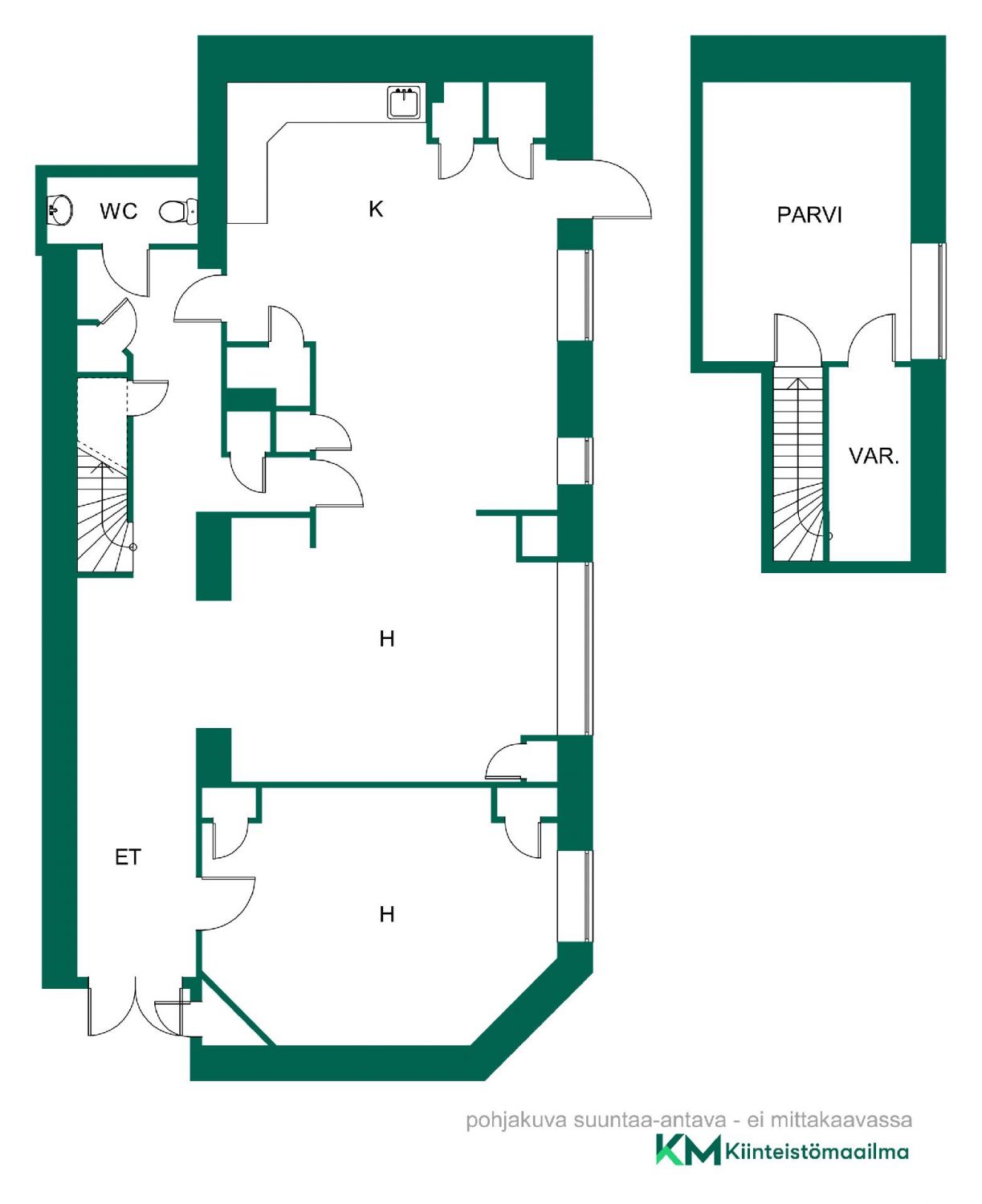 Tila on kaksitasoinen - ensimmäisessä kerroksessa on kaksi avaraa huonetta ja keittiö- ja wc-tilat. Ylätasolla on erillinen parvitila jota voi käyttää esimerkiksi neuvottelutilana sekä siitä löytyy säilytystiloja. Ikkunat ovat rauhalliselle sisäpihalle. Tilat on hiljattain remontoitu laadukkaasti ja ne täyttävät vaativankin maun mukaiset odotukset. Vuokra 3.248 euroa/kk + ALV 25,5 % = 4.076,24 euroa/kk.