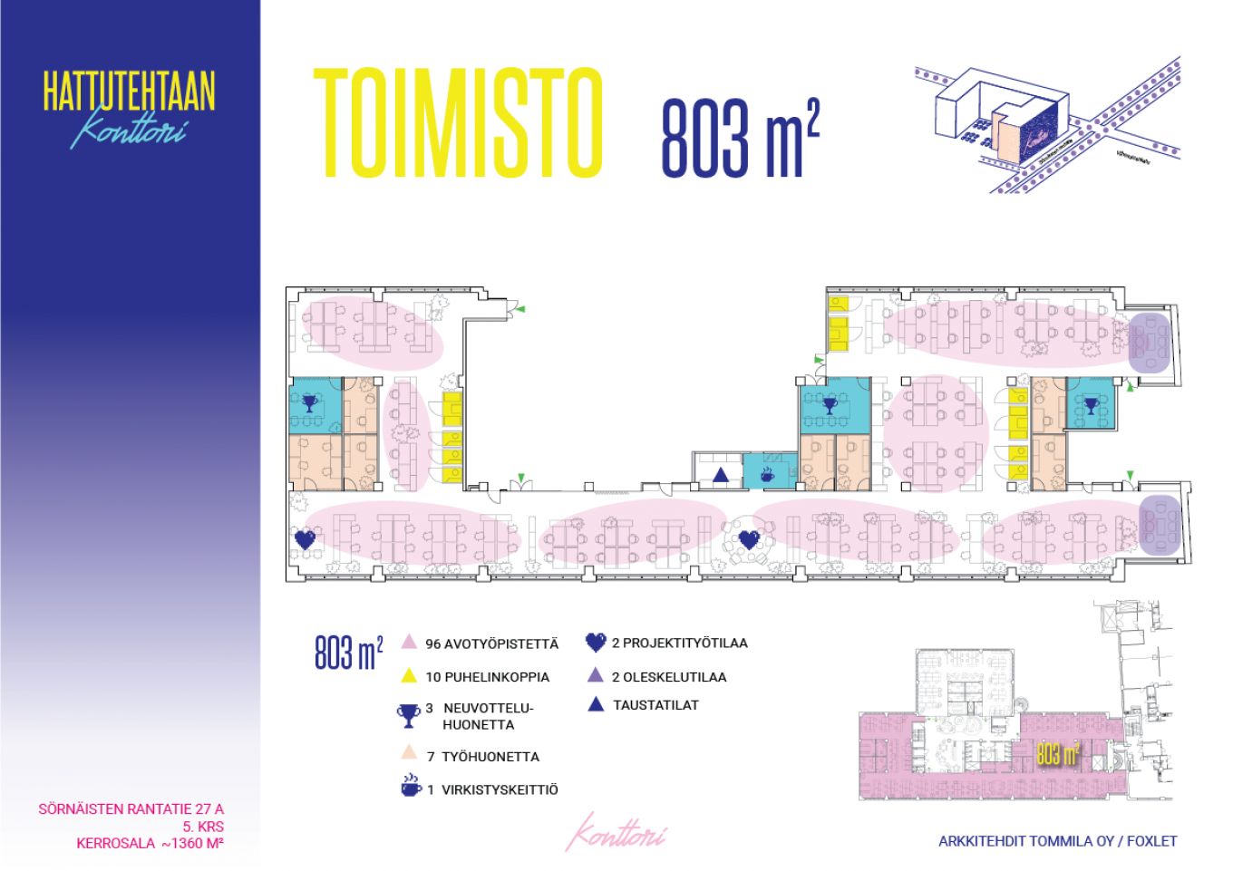 Hattutehtaan Konttori tarjoaa toimistotiloja yrityksille, jotka etsivät itselleen jotain erilaista. Konttori on saanut 1980-luvun estetiikkaan nojaavan innoituksensa kiinteistön rakentamisajankohdasta ja arkkitehtuurista. Konttorin konsepti on suunniteltu herättämään kiinnostusta. Jokaisella toimialalla on yrityksiä, jotka eivät ota itseään liian vakavasti - ja juuri heille Konttori on suunniteltu.