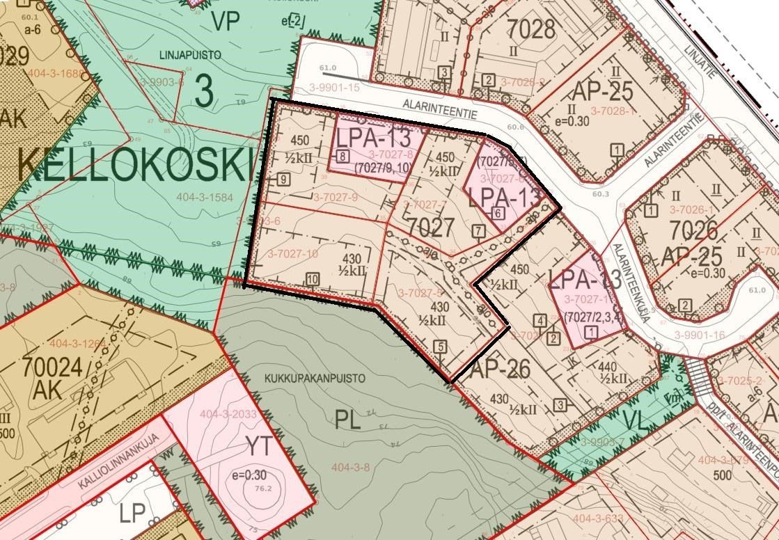 LPA-13 Autopaikkojen korttelialue. Ajo yhteys suluissa oleville tonteille