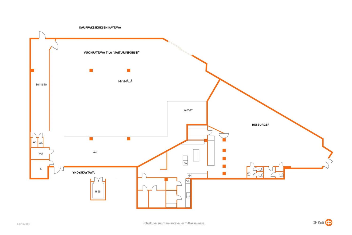 Tila sijaitsee kauppakeskuksen 2. kerroksessa.