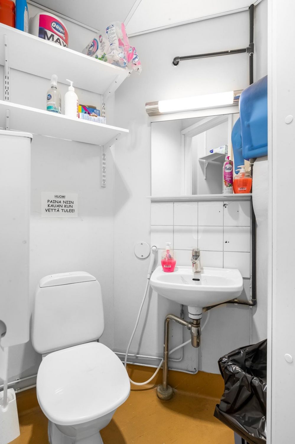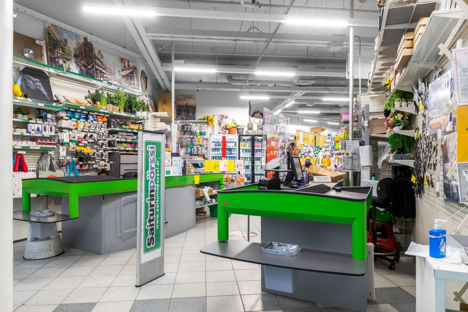 Toimistoksi jaettu tila kevyellä väliseinällä ja tilamuutokset mahdollisia. Varastotila jaettu pääosin myymälähyllyillä.