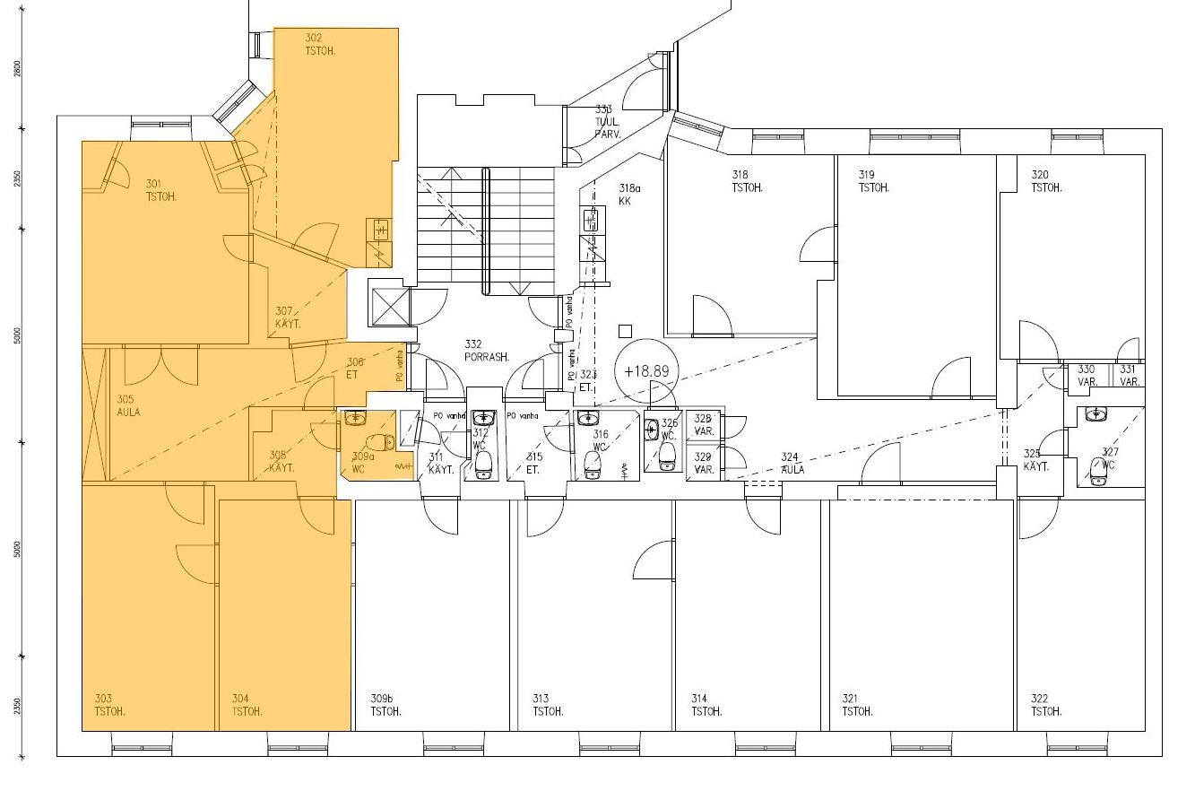 Tämä hurmaava toimisto löytyy arvokkaan vanhan rakennuksen kolmannesta kerroksesta Kalevankadulta, pienen kävelymatkan päässä Kampin kauppakeskuksesta ja metroasemalta.