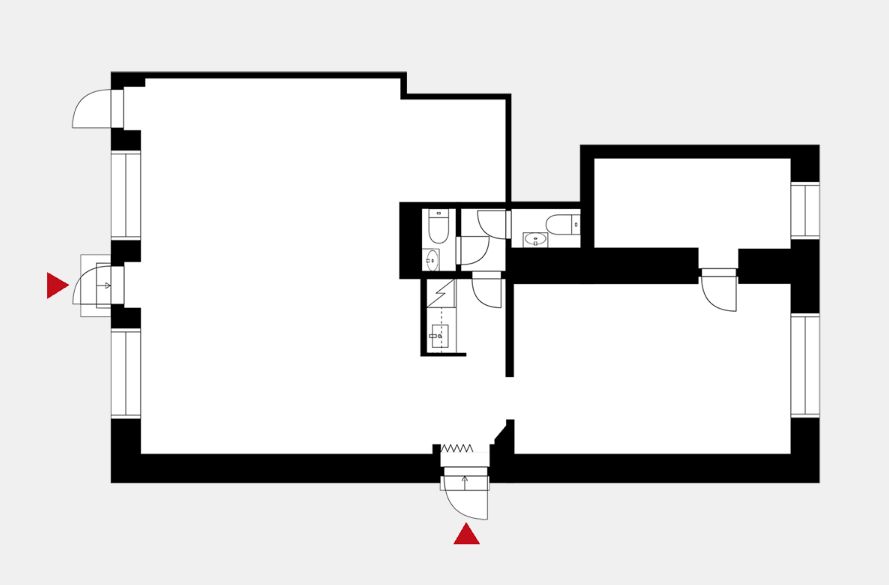 Liiketilaan on useampi sisäänkäynti. Valoisassa läpitalon liikehuoneistossa on suuret ikkunat sekä kadulle että sisäpihalle. Pohjaratkaisu taipuu monenlaiseen toimintaan. Kaksi wc:tä, pieni keittiö/taukotila sekä pieni varasto/komero.