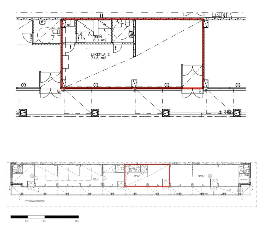Tämä 71,5 m² liiketila sijaitsee kiinteistön 1. kerroksessa. Tila on avonainen ja siihen kuuluu oma wc-tila.