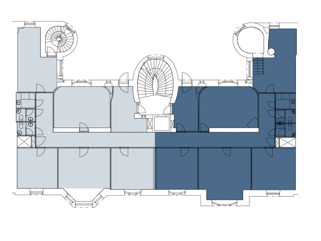 Tämä 163 m² toimisto sijaitsee kiinteistön 3. kerroksessa. Tilassa on avotilaa, huoneita sekä omat sosiaalitilat. Tilassa on korkeat, valoisat huoneet sekä isot ikkunapinnat tuomassa valoa. Erikoisuutena tilasta löytyy alkuperäiset kaakeliuunit.