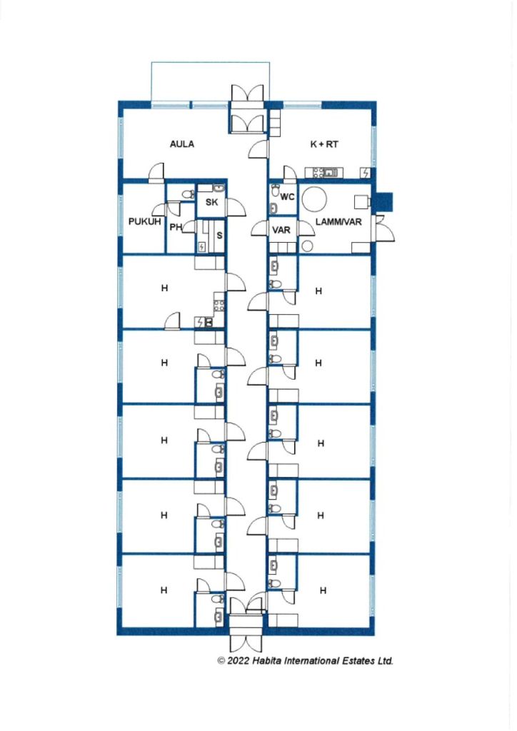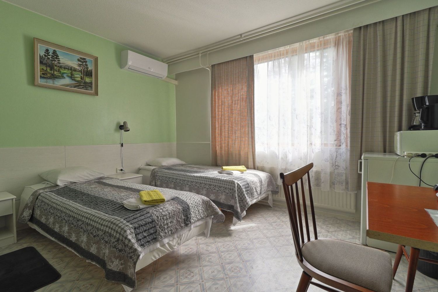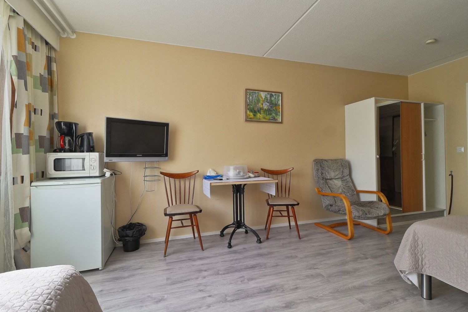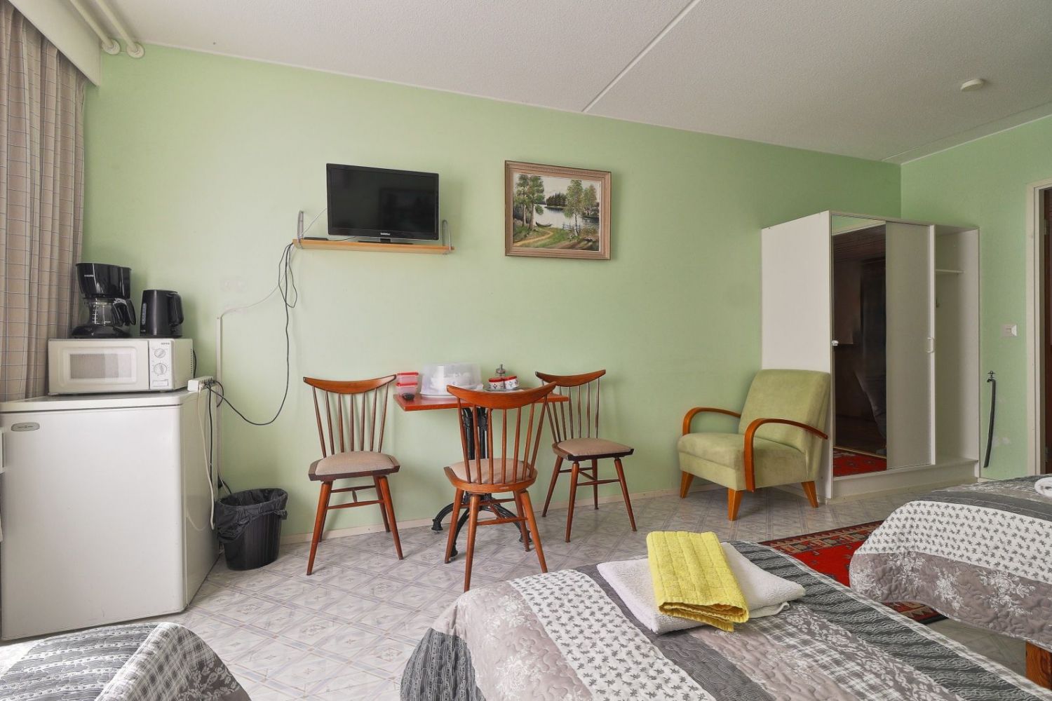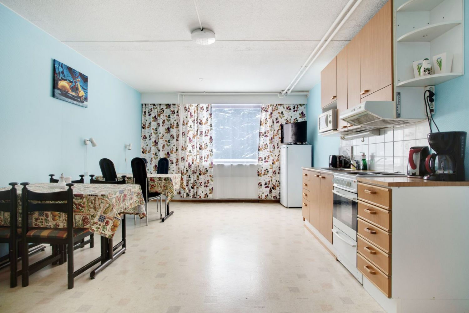 huoneetta, erillinen asunto, keittiö, sauna ja kylpyhuone. Julkisivu ja isompi osa hotellihuoneista