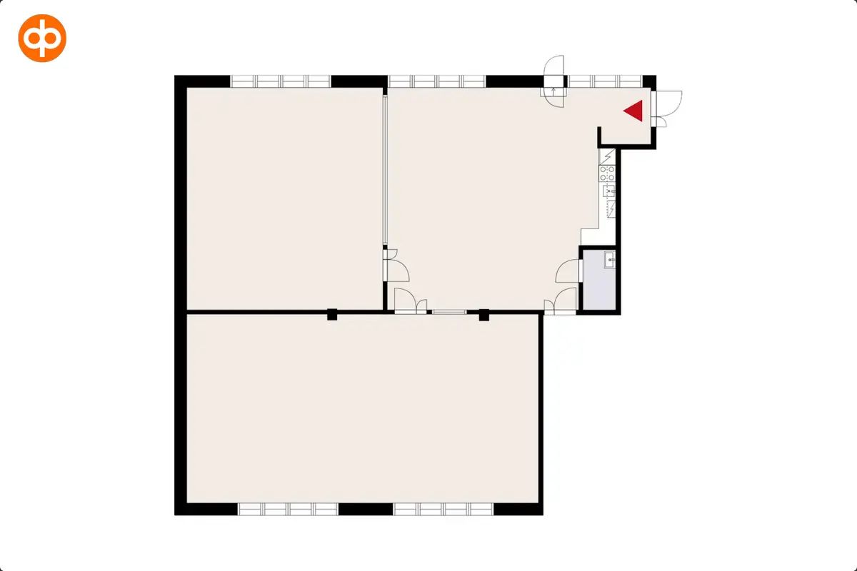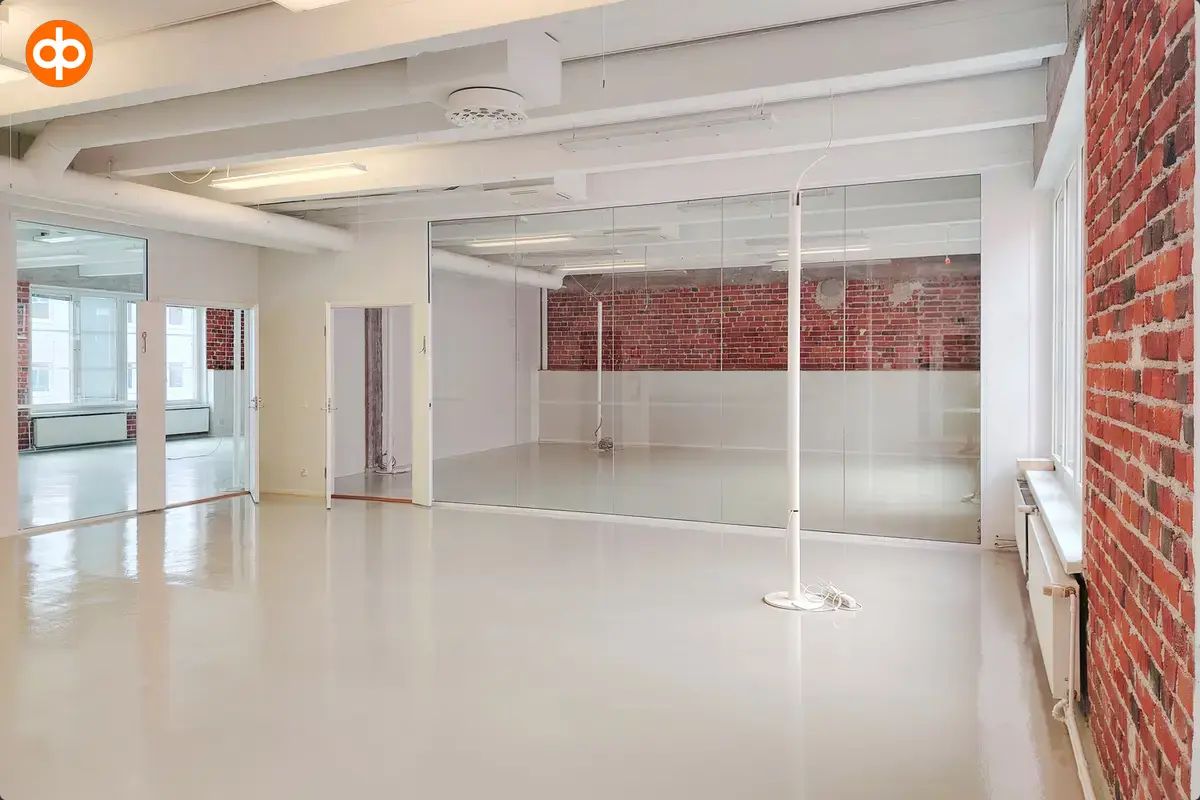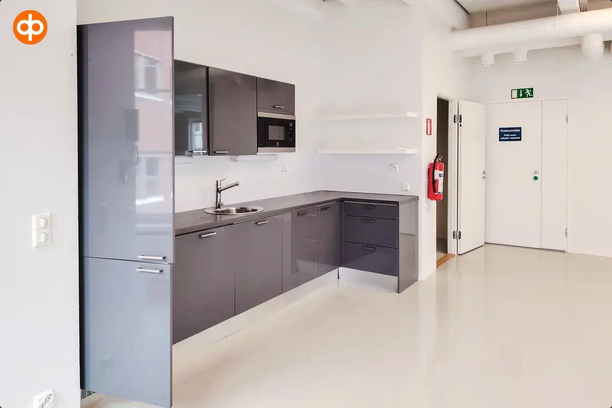 - Toimitilassa on kolmeen huoneeseen jaettua avotilaa ja taukokeittiö. Kerroksessa yhteiskäyttöiset wc-tilat.