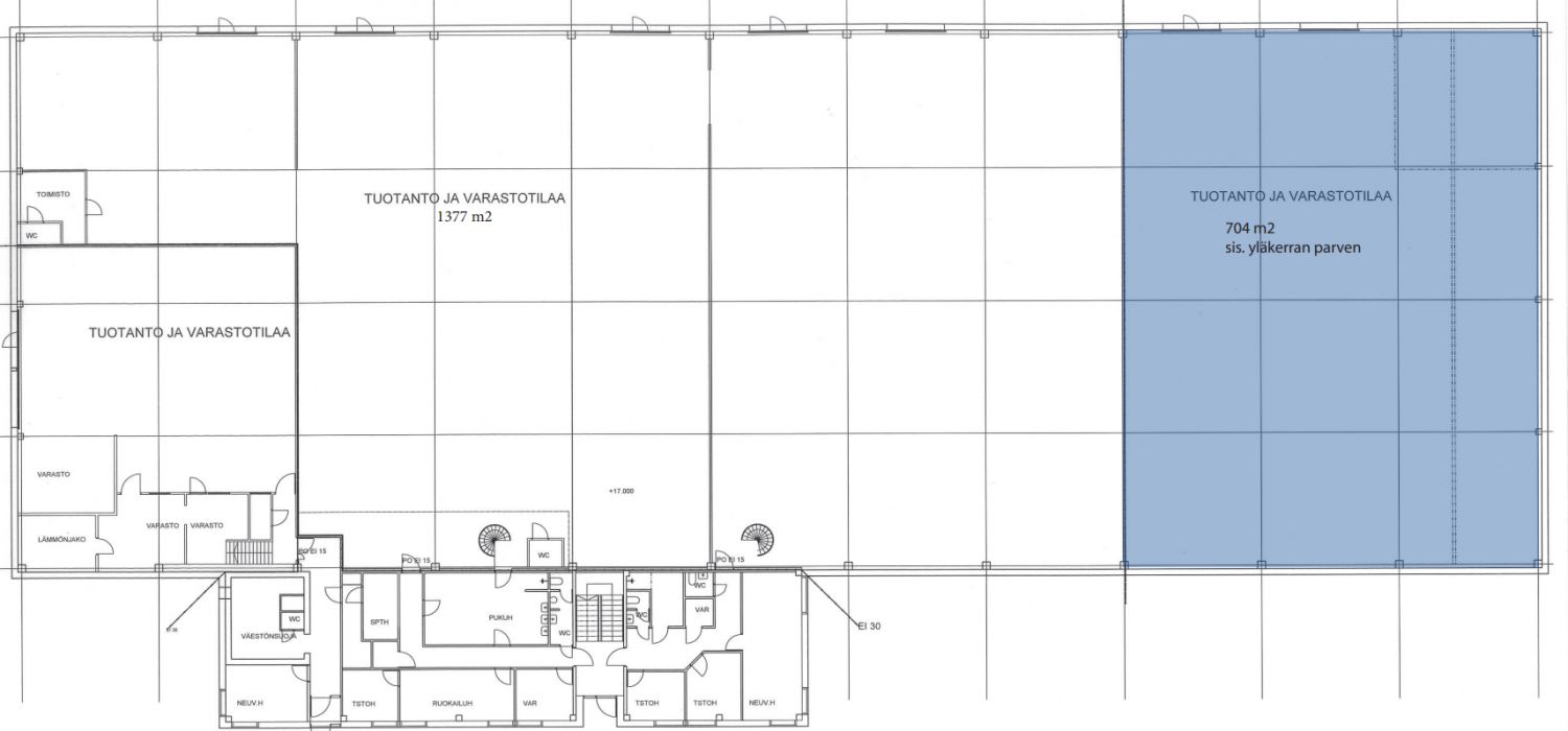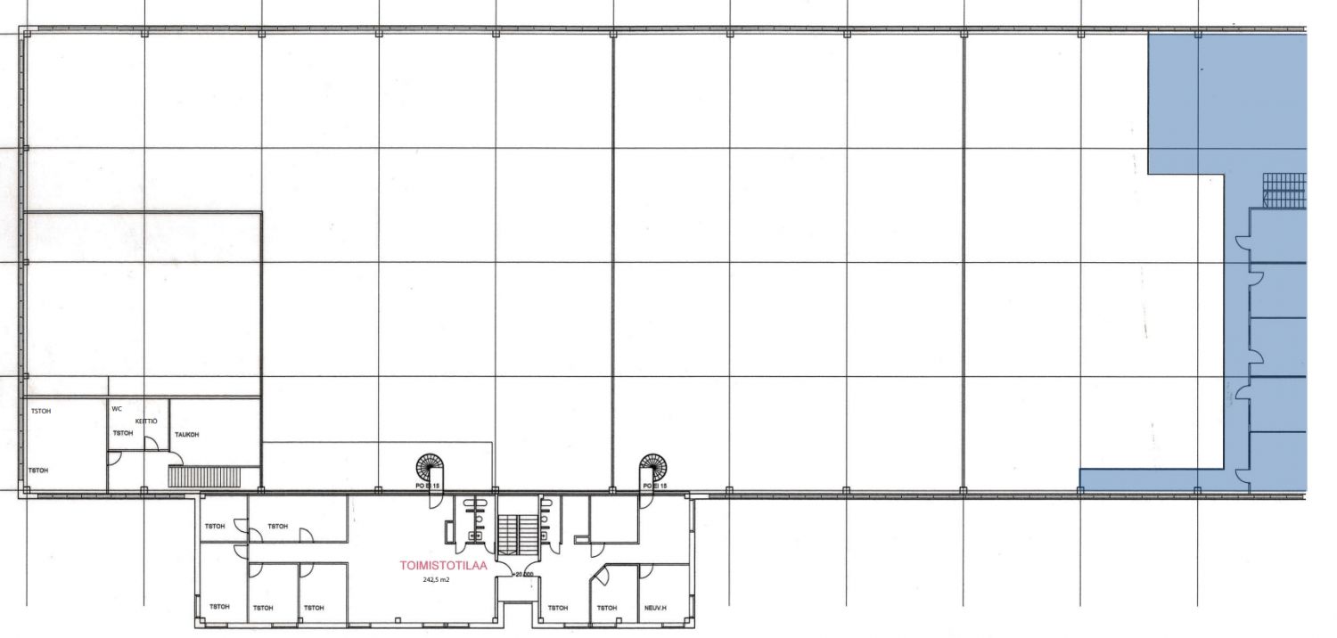 Vuokrattavana varastointi- ja tuotantokäyttöön soveltuvaa toimitilaa omalla sisäänkäynnillä. Tilassa on kaksi nosto-ovea. Tila koostuu isommasta korkeasta tilasta sekä yläkerran parvitilan huoneista, jotka sopivat esimerkiksi toimistoiksi.