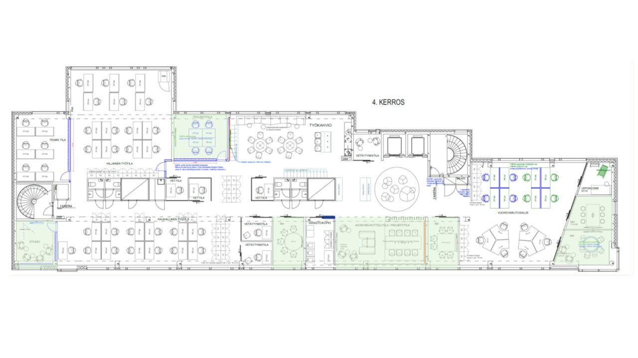 Talossa on kaksi hissiä sekä keittiö- ja taukotilat kaikissa kerroksissa. Ensimmäisessä kerroksessa on useita neuvottelu- ja kokoustiloja, jotka on helppo tarvittaessa muuntaa esimerkiksi asiakaspalvelukäyttöön.