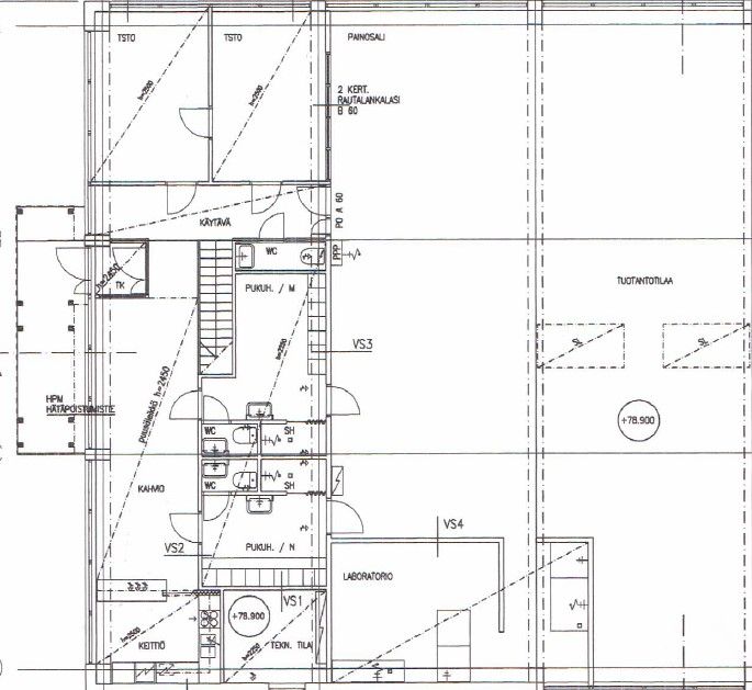 Hallin yhteydessä on toimisto, jossa on kaksi toimistohuonetta. Tilassa on oma keittiö, pukuhuonetilat miehille ja naisille ja omat wc tilat.