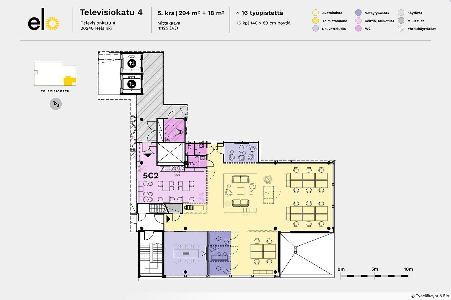 Tila koostuu nykyratkaisussaan kahdeksasta editointihuoneesta. Tilat ovat muokattavissa esim. pohjakuvamallin mukaiseksi joustavasti käyttäjän tarpeen mukaisesti.
