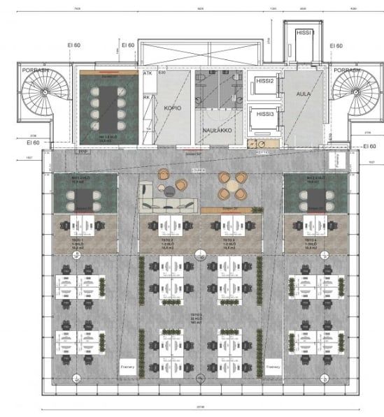 Nyt vuokrattavana juuri remontoitu, valoisa ja moderni toimistotila kahdeksannessa kerroksessa. Tila koostuu pääasiassa avotilasta, mutta mukana on myös muutamia työ- ja neuvotteluhuoneita. Lisäksi käytössä on siistit wc-tilat sekä pieni keittiö. Korkealta avautuvat upeat näköalat Helsingin ylle.