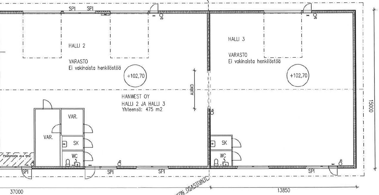 Pohjakuvassa tilan merkintä on halli 3.
