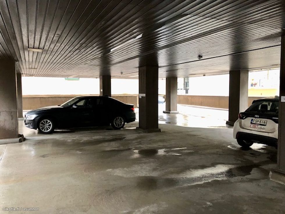 Pysäköinti: Autopaikkoja hallissa ja pihalla.