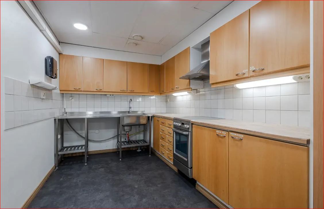 Valmistus/koekeittiö vapaa. Tilassa ei rasvakanavaa, joten käy vain leipomotuotteiden valmistukseen tai kylmäruokien esim sushien valmistukseen, ei siis perinteiseen ravintolakeittiön ruuan valmistukseen. Tila on kellarikerroksessa, ei ikkunoita.Tila ollut leipomotuotteiden tuoteesittelytilana ja leipomotuteiden koe ja esittely valmistuksessa. Kiinteistö on BREAAM In-Use Good -sertifioitu.