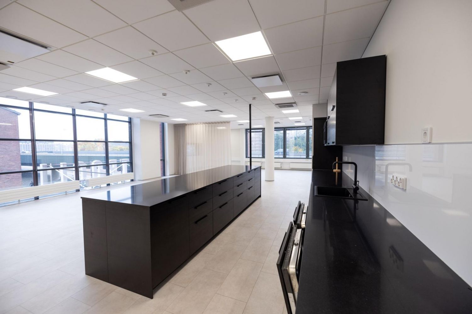 Ikkunoista avautuvat upeat näkymät Suvilahteen ja kiinteistön sisäpihalle, tuoden runsaasti luonnonvaloa tilaan.