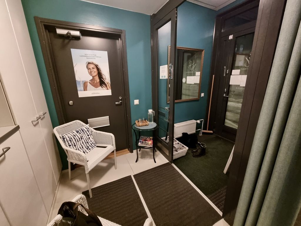 Tämä liiketila on kooltaan 54 m², ja se sijaitsee kiinteistön katutasossa. Tilassa on toiminut kauneushoitola, ja se on terveystarkastajan hyväksymä. Tila on pääosin avonainen ja jaettu tällä hetkellä kolmeen erilliseen hoitohuoneeseen verhojen avulla. Lisäksi tilasta löytyy keittiö sekä wc-tila.