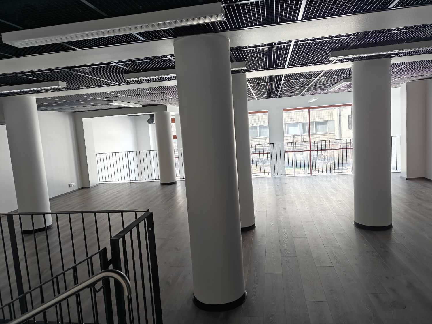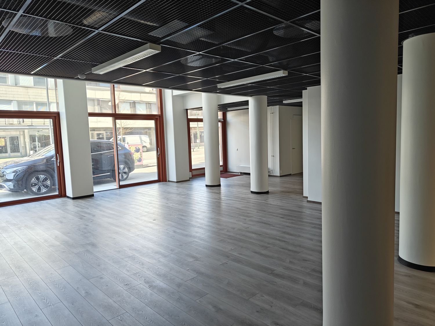 Tila jakaantuu katutason tilaan sekä toisen kerroksen tilaan, minne sisäiset portaat sekä hissimahdollisuus.