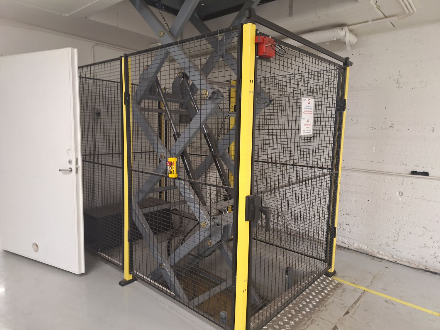 Alakerrassa n 400 m2 avointa varasto-, näyttely-, huolto- ja sosiaalitilaa.