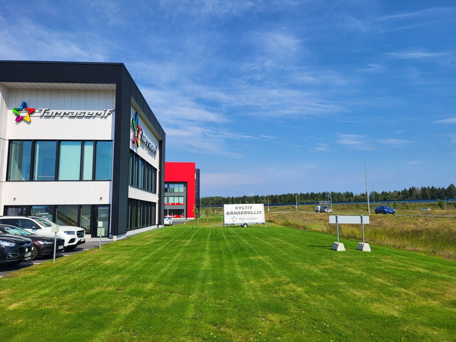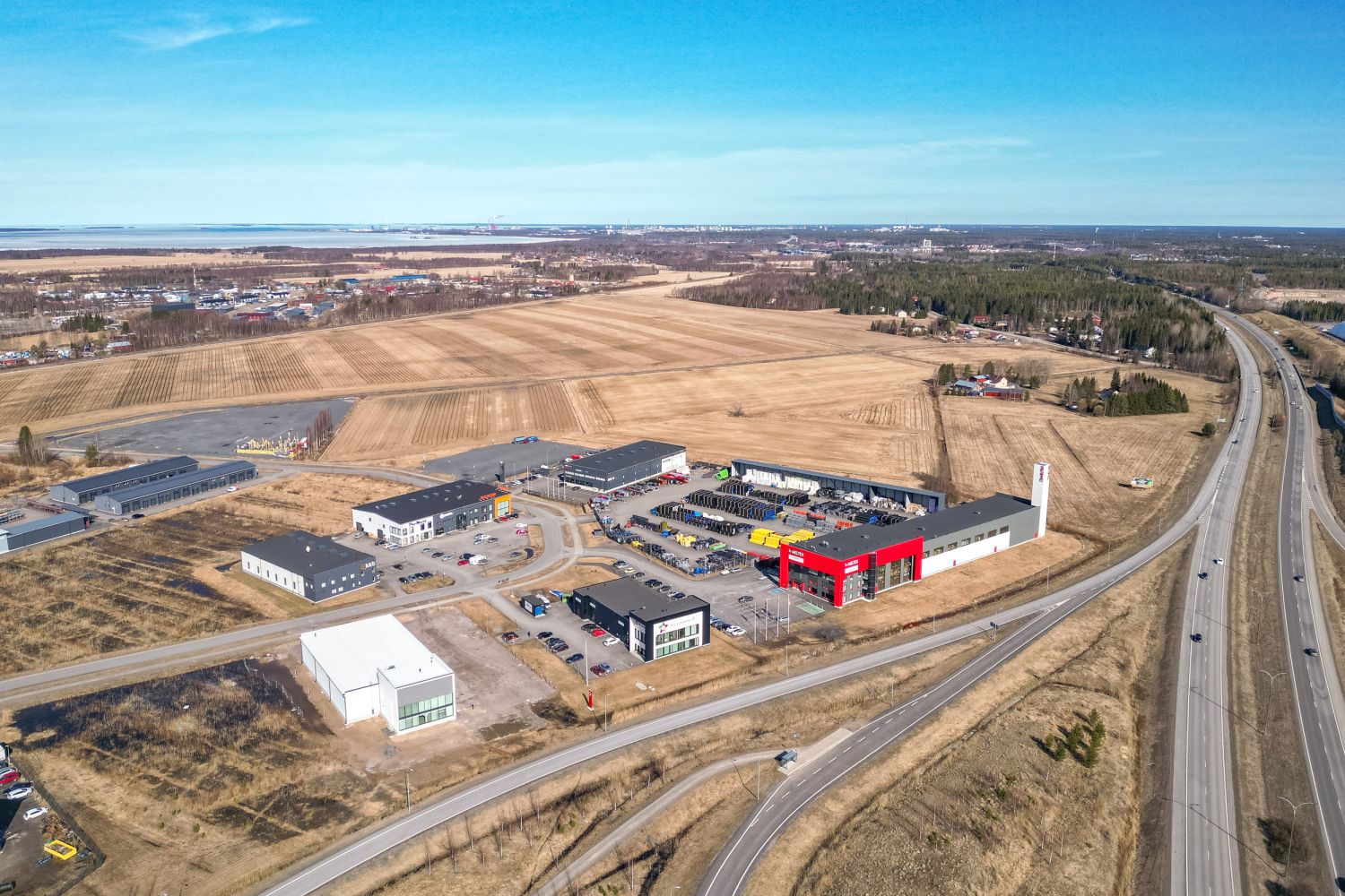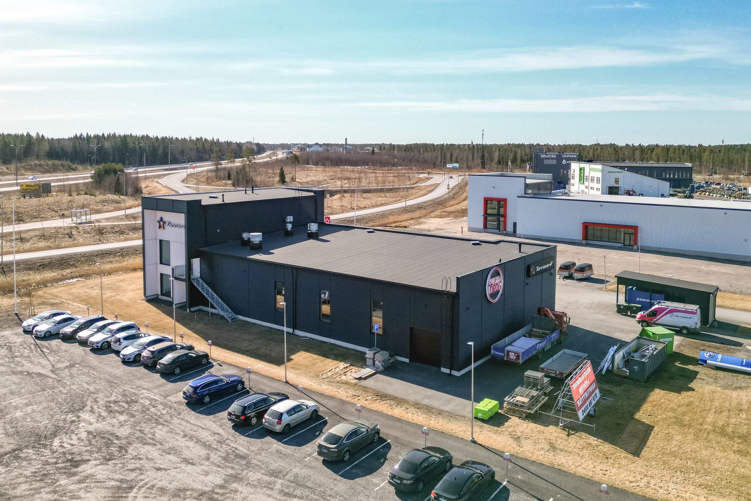 Rakennuksen näkyvyys E75 eritasoliittymästä ja vilkasliikenteisen tien suunnasta on erittäin hyvä.