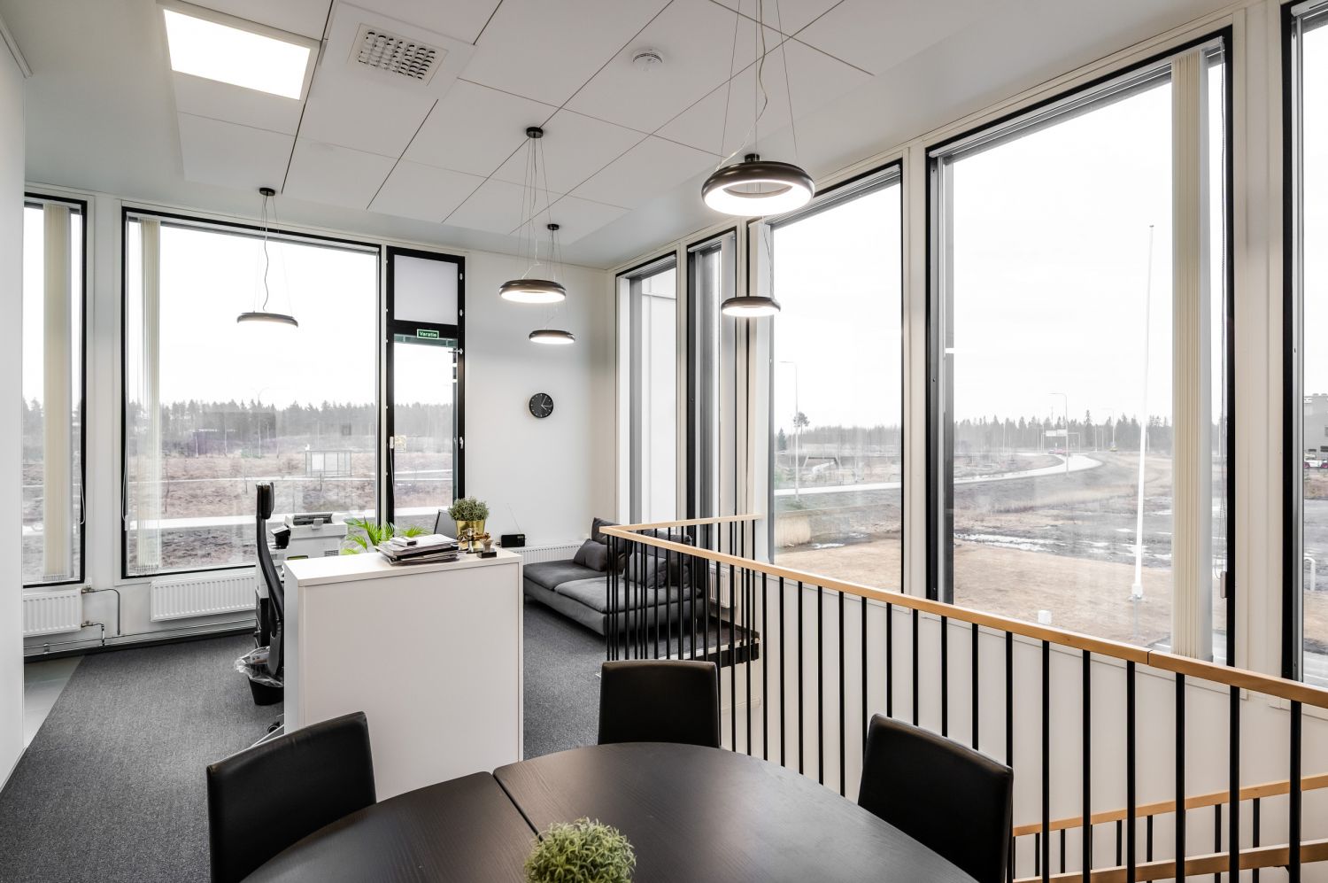 1. krs. myynti/näyttely ja toimistotila, jossa työpisteitä 17 hengelle sekä siivous- ja varastotila, pinta-ala yhteensä n. 113,5 m2.