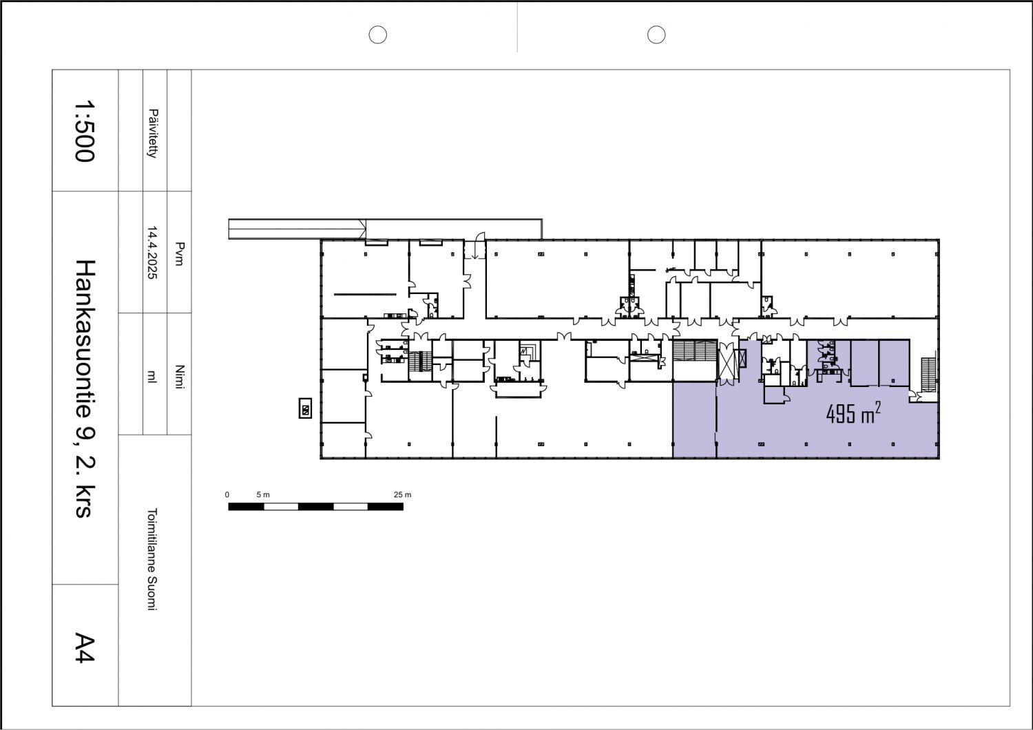 Vuokrataan toimitila, joka sopii erityisesti avokonttoriksi. Hyvät neuvotteluhuoneet. Toimitilassa on jäähdytys. Oma keittiö, wc:t ja pukuhuoneet. Osaa tilasta voi tarvittaessa käyttää varasto- tai tuotantotilana. Tilan korkeus on noin 3 m ja kattoikkunat tuovat lisää valoa. Toiseen kerrokseen johtaa ajoramppi, lisäksi käytettävissä on kiinteistön tavarahissi. Tilaan pääsee myös suoraan tällä hissillä.