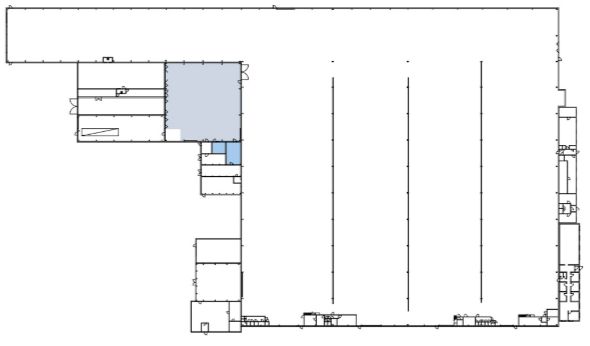 Vuokrattavana oma erillinen tila. Ensimmäisen kerroksen korkeaa (n. 7,5 m) hallitilaa, jossa on järeä hallinosturi (20t) ja iso lattian kantavuus. Oma iso maantason nosto-ovi 4,7 m x 3.85 m. Tilaan sisältyy toimisto/sos.tilat (n. 55 m2), erillisiä kaappeja on lisäksi vuokrattavissa sosiaalitiloissa.