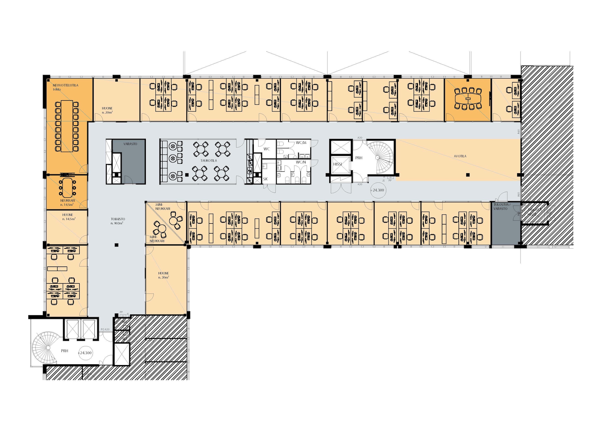 - Pinta-ala: 10 911 m², kerrospinta-ala 1 172 m², jaettavissa 300 m² / 800 m²