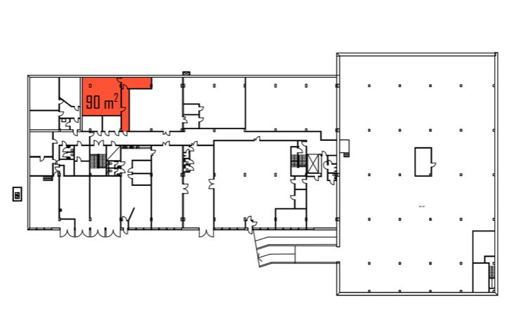 Tämä 90 m² varastotila sijaitsee kiinteistön kellarikerroksessa. Kulku tilaan on lastausaulan kautta. Tilassa on myös erillinen varastohuone, jonne on pääsy suoraan päätilasta tai omassa käytössä olevan käytävän kautta.