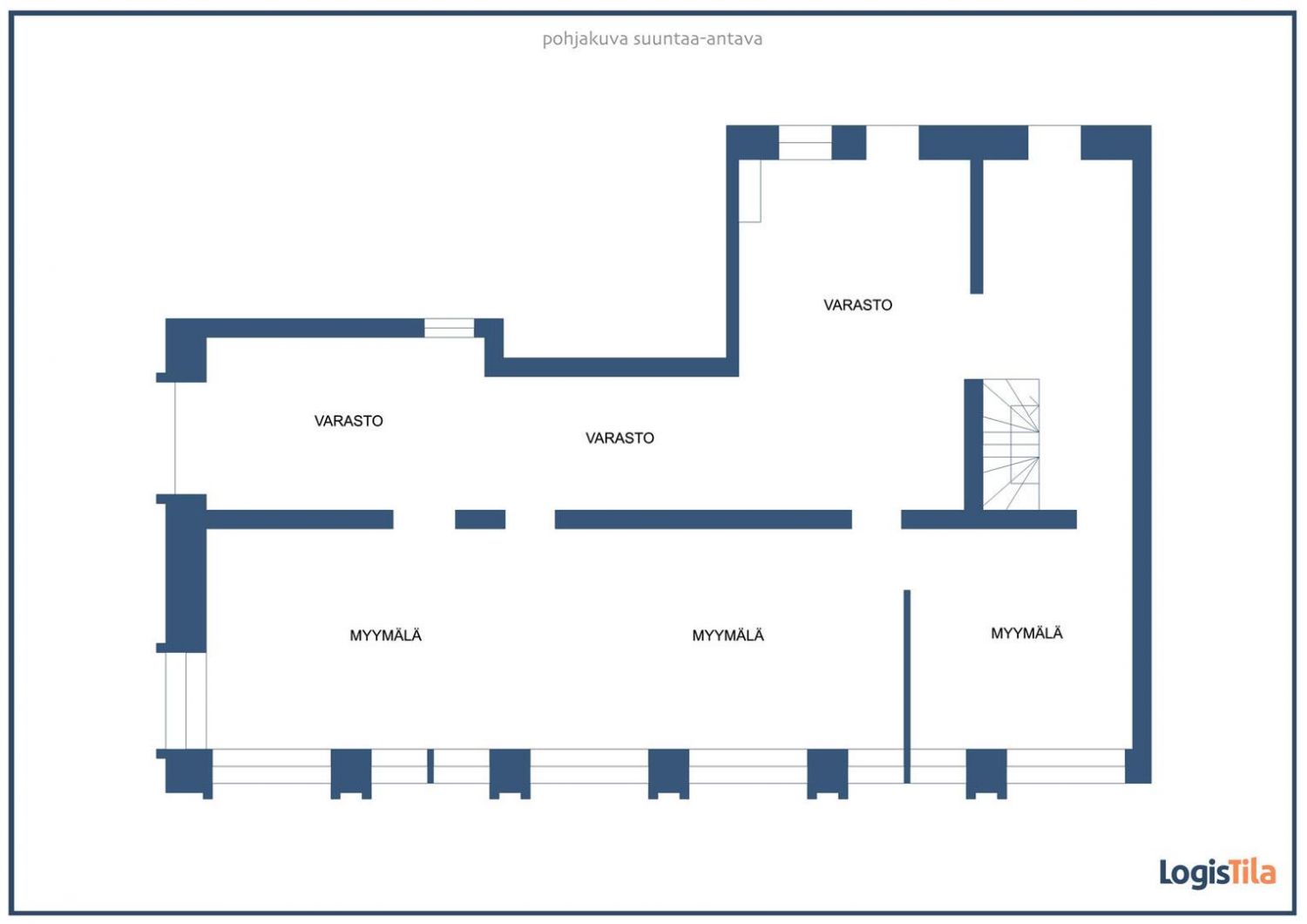 Tässä on tarjolla siisti ja hyvin pidetty liiketila kokonaisuus näkyvällä ja vilkkaalla paikalla. Katutason myymälätilassa on isot näyteikkunat kauppakadulle. Liiketila koostuu useammasta eri huoneistosta ja tila on tarvittaessa jaettavissa erikokoisiksi liiketiloiksi. Katutason liiketilaa on yhteensä n. 168 m2. Tällä hetkellä alakerrassa on keittiö- ja tauko-, wc- ja varastotiloja n. 94 m2.