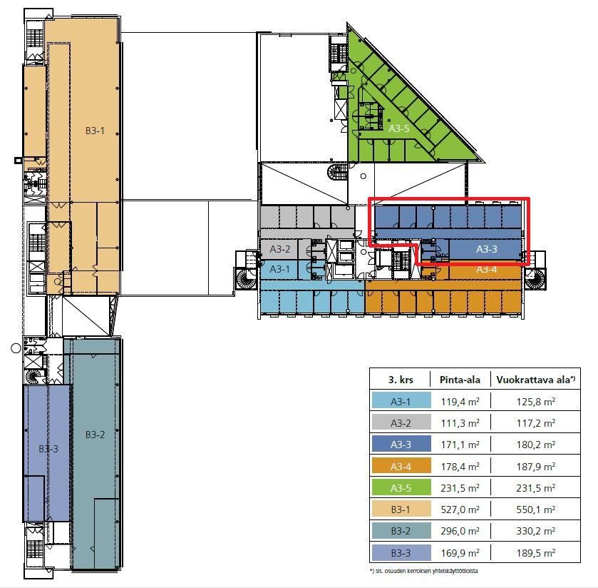 Vapaana esim. 180 m², 180,5 m², 188 m² (katso pohjakuvat ohessa).