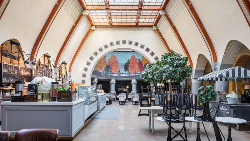 Rakennuksen pohjakerroksessa toimii suosittu Robert’s Coffee, upeassa jugendtyylisessä salissa.