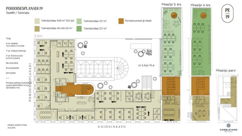 Uniikki, toisen kerroksen toimistotila Havis Amandaa vastapäätä. Huippuedustava tila jossa 11 työhuonetta ja 3 tyylikästä neuvotteluhuonetta. Lisäksi siisti keittiö taukotiloineen, sekä runsaasti wc-tiloja.
