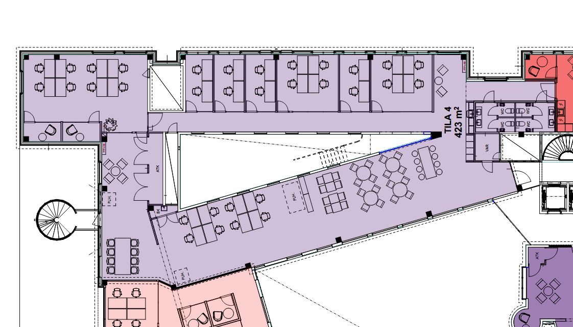 Laadukkaasti saneerattua toimistotilaa rakennuksen 3. kerroksesta.