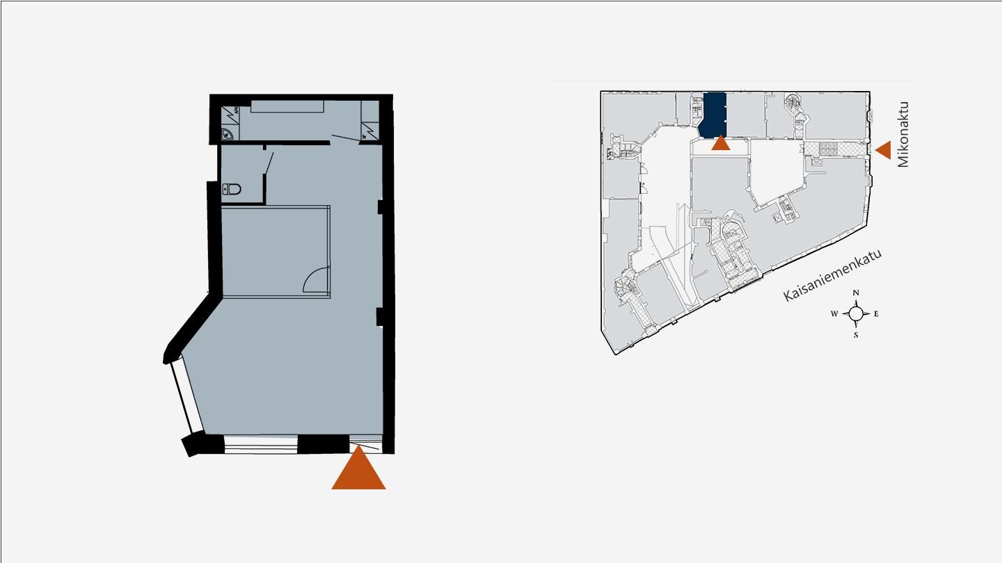 Toimisto sijaitsee sisäpihan katutasossa, johon pääsee näppärästi sekä Mikonkadulta että Kaisaniemenkadulta. Tila remontoidaan käyttäjän näköiseksi, joten voit muokata siitä juuri yrityksellesi sopivan.