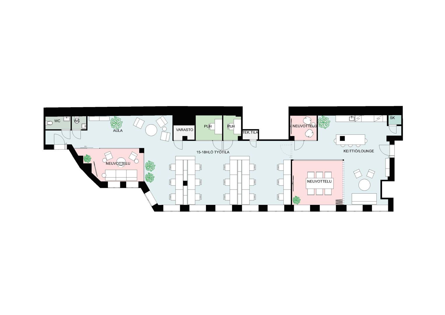 Tervetuloa tutustumaan tähän upeaan toimistotilaan, joka sijaitsee arvokiinteistössä aivan Helsingin sydämessä. Tämä 3. kerroksen toimitila on juuri remontoitu modernein värivaihtoehdoin ja skandinaavisin materiaalein, luoden näyttävän ja viihtyisän avotoimiston. Tilassa on myös muutama erikokoinen neuvottelutila, jotka tarjoavat joustavuutta erilaisiin tarpeisiin.