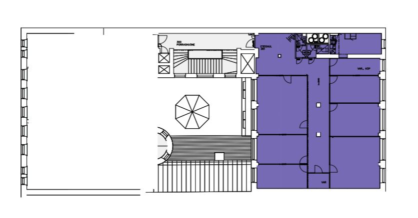 Tämä 215 m² toimisto sijaitsee kiinteistön 3. kerroksessa ja se koostuu huoneista, keittiöstä sekä omista wc-tiloista. Tila on kuitenkin muokattavissa vuokralaisen tarpeiden mukaan. Toimistosta on näkymät sisäpihan suuntaan.