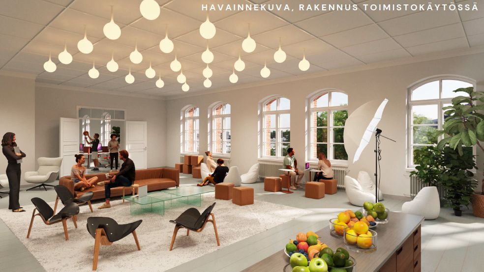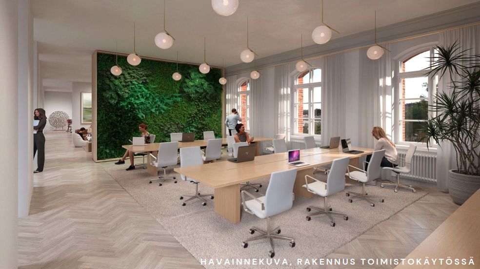 Kiinteistössä on käynnissä mittava peruskorjaushanke, jonka myötä arvorakennukset pääsevät uuteen käyttöön. Vuokrattavaa tilaa on yhteensä 3600 m² ja kerroskoko on noin 1200 m². Kerrokset on mahdollista jakaa kahdelle käyttäjälle, noin 550 m² kokoisiin osiin. Tilat soveltuvat erinomaisesti toimisto-, hoiva-, majoitus tai opetuskäyttöön. Käyttäjillä on nyt erinomainen tilaisuus päästä suunnittelemaan omat tilansa. Saneerauksen arvioitu valmistuminen on vuonna 2027.