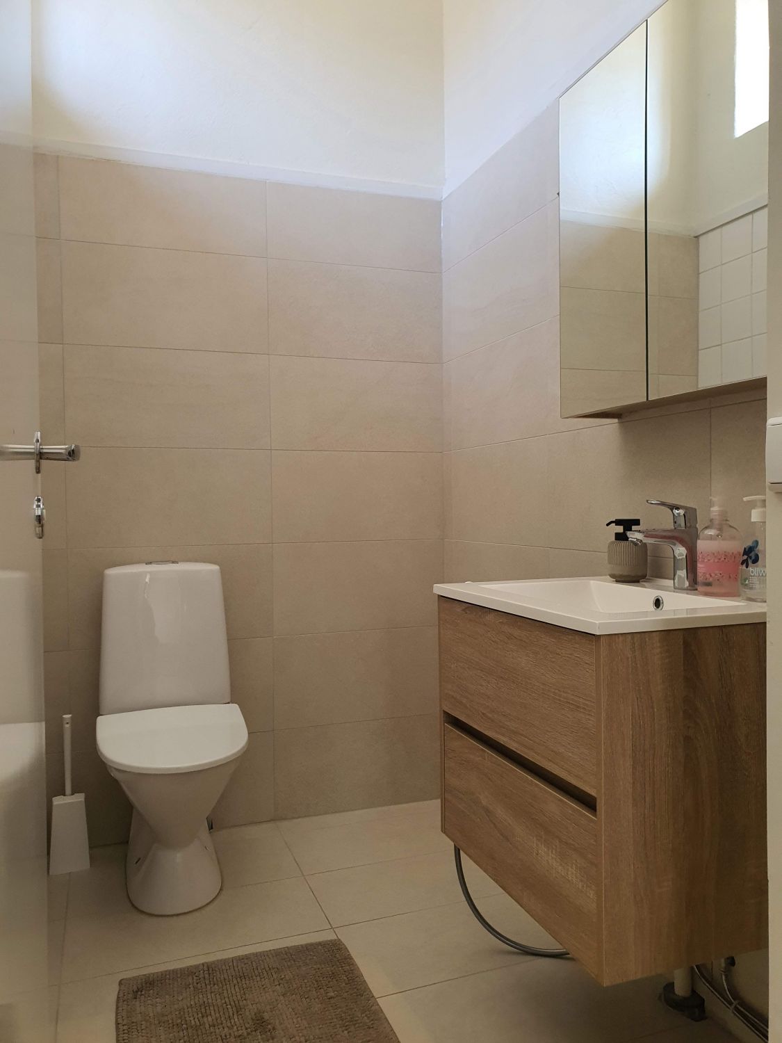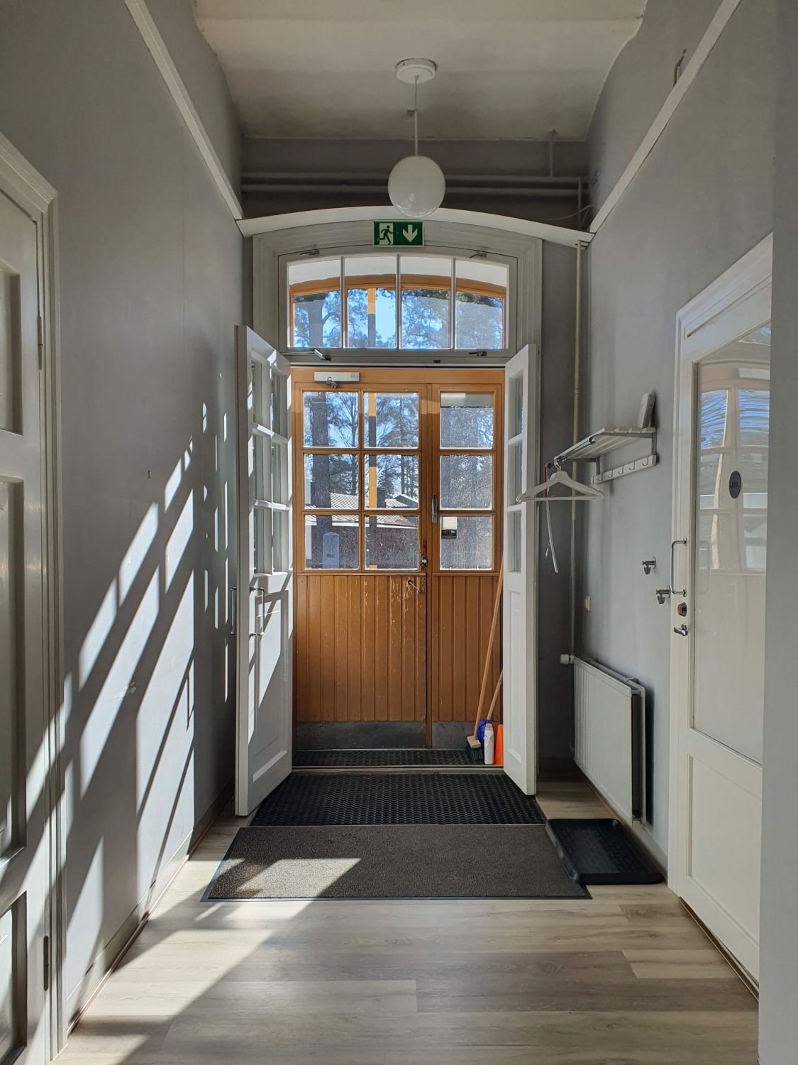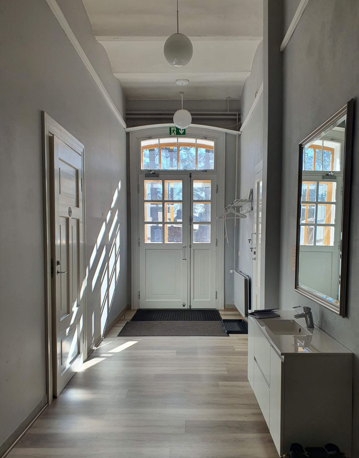 Tämä kaunis tila sisältää kolme erikokoista huonetta (44,5-/17-/9m2), upean sisääntulohallin, reilun kokoisen modernin keittiö-/taukotilan ja kaksi WC-tilaa, joista toinen inva-mitoituksella.