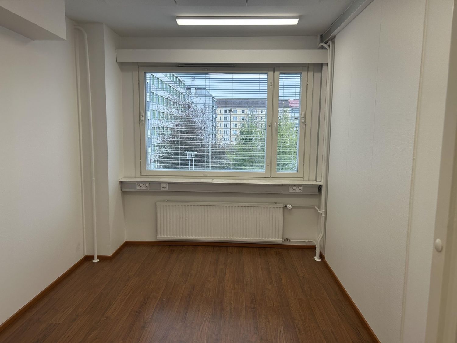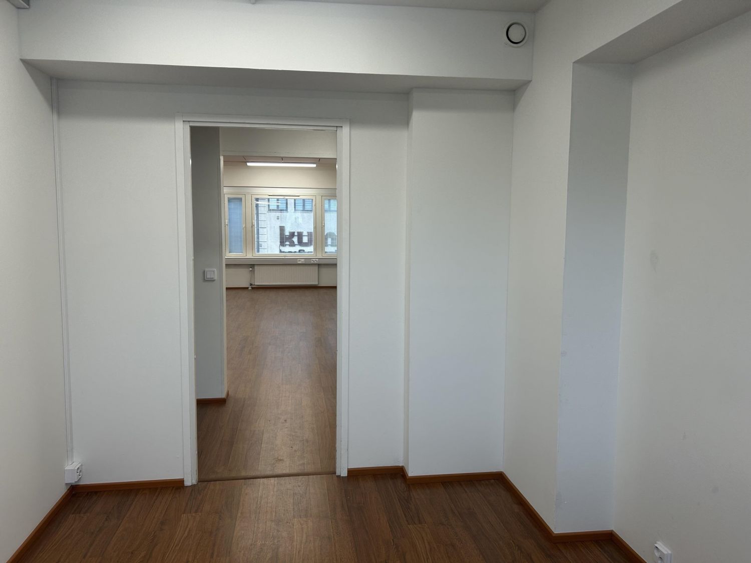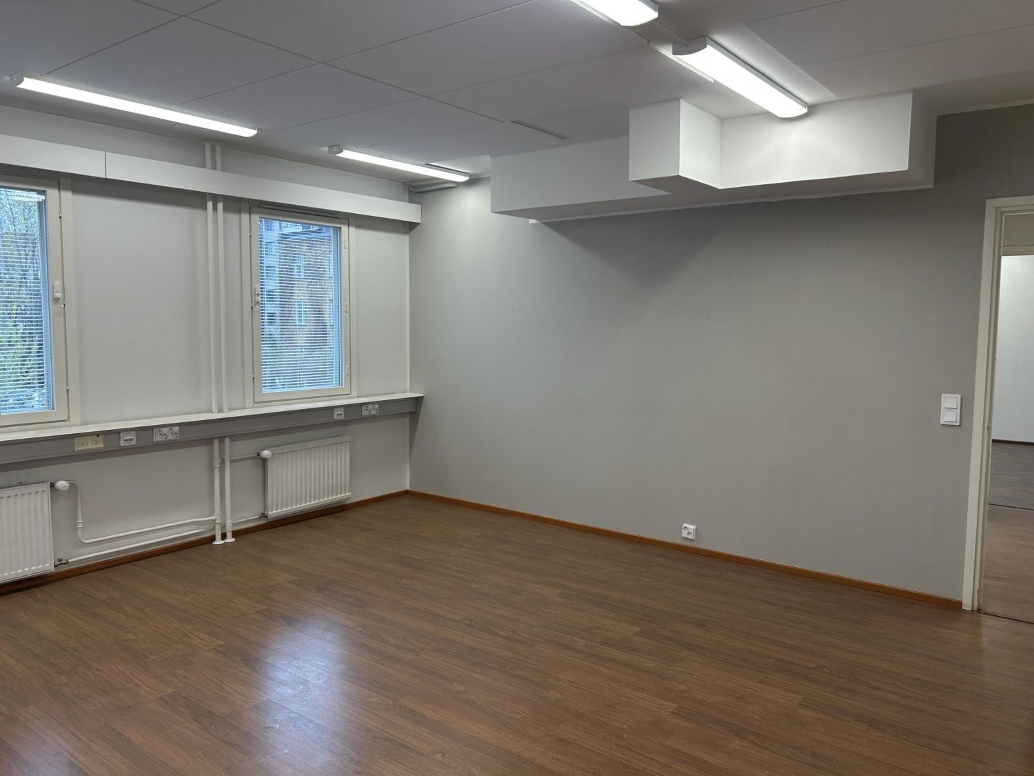 Huoneisto jakaantuu kolmeen tilavaan erilliseen huoneeseen ja sisääntulossa isoon avokonttoriin. Läpitalon huoneisto, kaikissa ikkunoissa on sälekaihtimet, pinnat on ajanmukaiset, vaaleat seinät ja siistit laminaattilattiat. Nykyajanmukaan led-valaistus, täysin saneerattu vessa ja keittotila jossa on jääkaappi ja tiskikone.