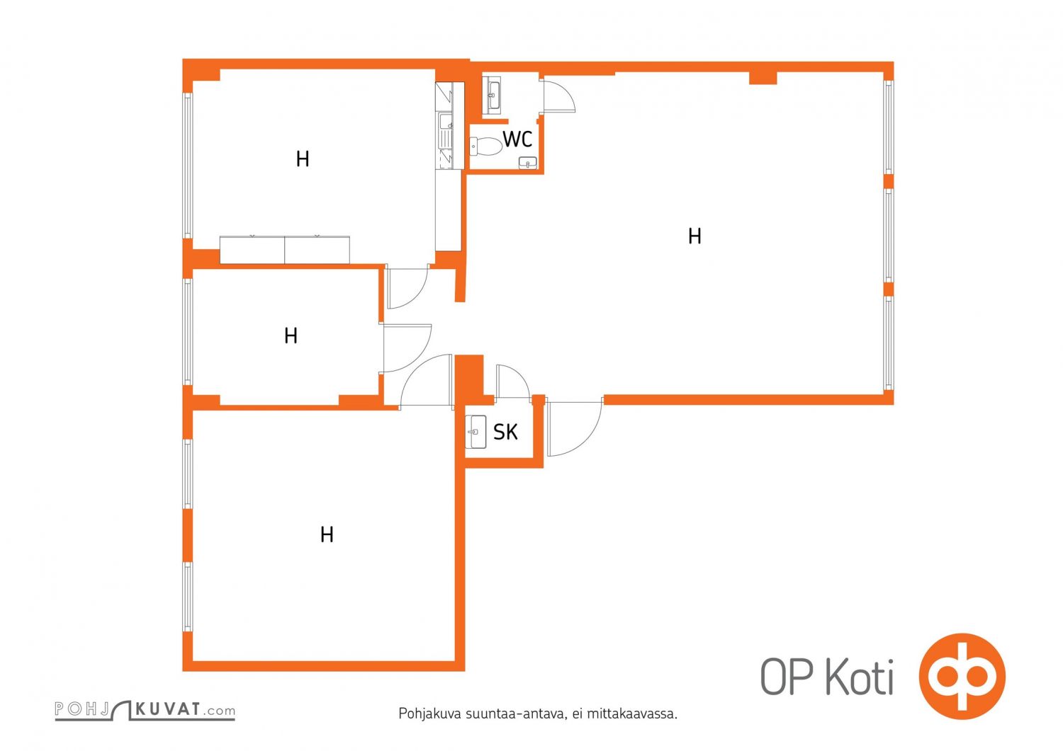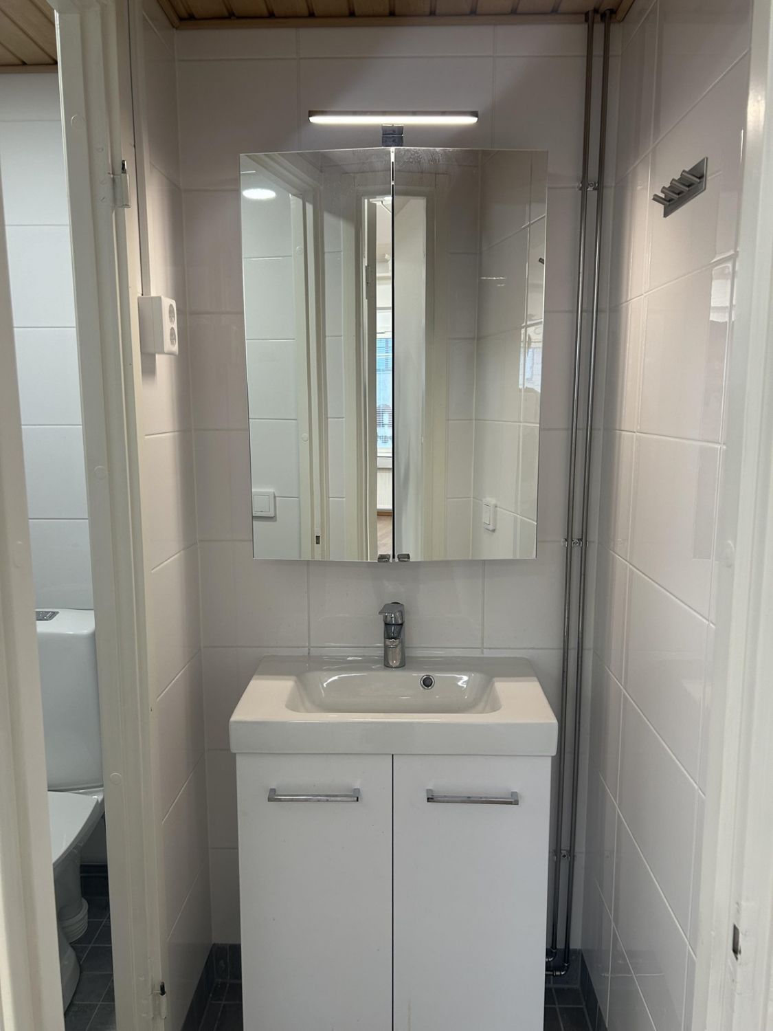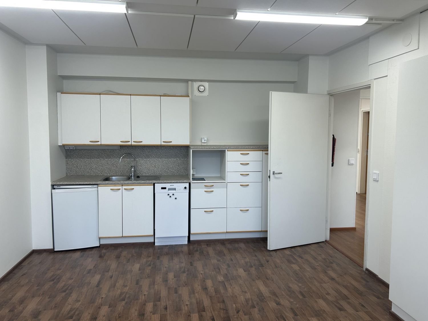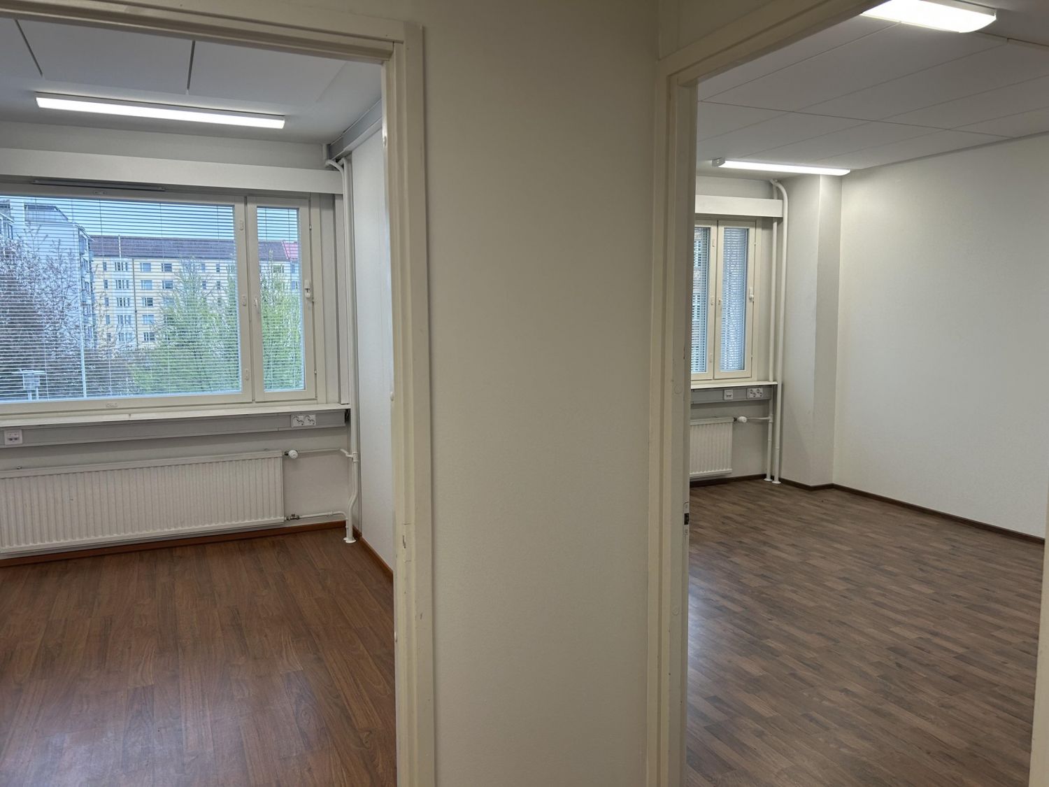 Huoneisto jakaantuu kolmeen tilavaan erilliseen huoneeseen ja sisääntulossa isoon avokonttoriin. Läpitalon huoneisto, kaikissa ikkunoissa on sälekaihtimet, pinnat on ajanmukaiset, vaaleat seinät ja siistit laminaattilattiat. Nykyajanmukaan led-valaistus, täysin saneerattu vessa ja keittotila jossa on jääkaappi ja tiskikone.