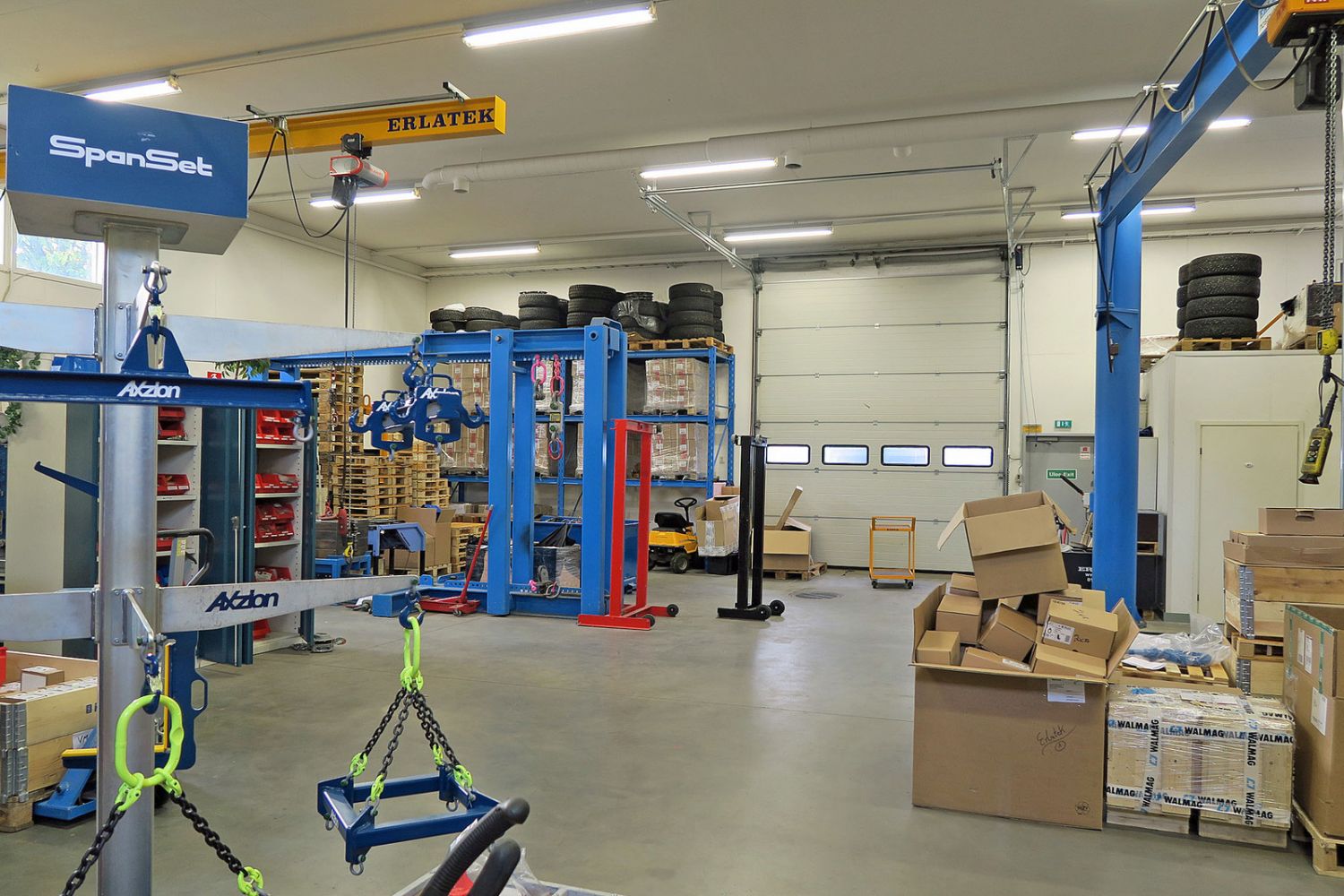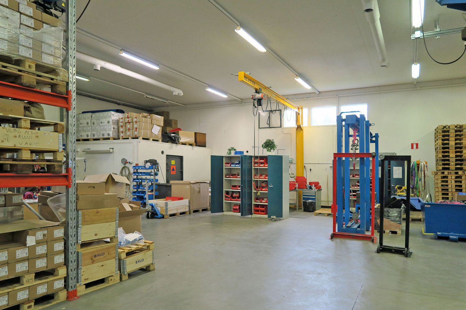 Hallissa 2 kpl lattiakaivoja, 2 kpl nosto-ovia 3,6 x 4,5 m ja 2 kpl pylväskiertonostimia (1600 kg, 1600 kg ja 2050 kg).