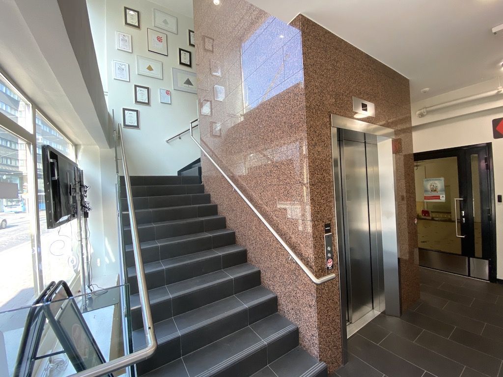 Tilaan on oma sisäänkäynti Kaisaniemenkadulta ja hissiyhteys suoraan Yliopiston metroasemalle. Näkyvä sijainti raitiovaunupysäkin vierestä.