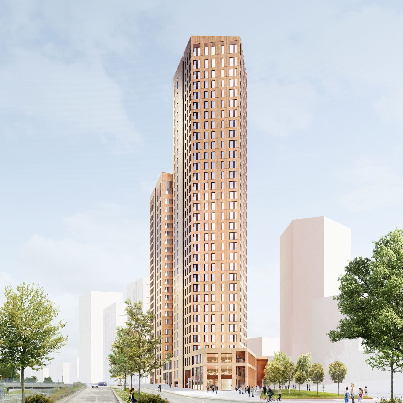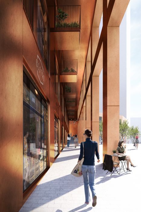 Huippumodernia liiketilaa rakennettavan 33-kerroksisen pilvenpiirtäjä Atlaksen kivijalassa.
