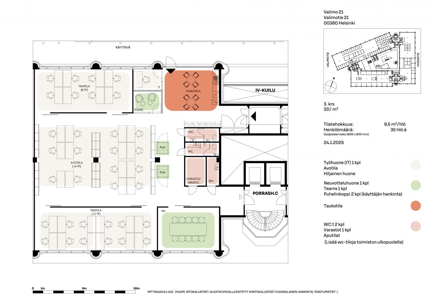 Avara toimistotila vuokrattavissa muuttovalmiista, täysin modernisoidusta kiinteistöstä.